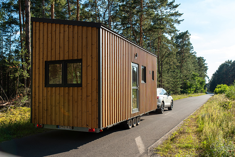 Alle tinydomo verfügen über unser PickUp & Go System und können damit jederzeit mit einem Trailer unkompliziert an einen anderen Ort transportiert werden, für den Fall dass Sie später einmal umziehen und Ihr tinydomo mitnehmen möchten.