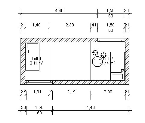 • Nutzfläche Schlafbereich (Loft über Wohnbereich): ca. 4,44 qm