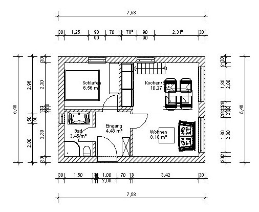 - Eingangstür aus Kunststoff mit 3-fach Verriegelung und 3 Sicherheitsschlüsseln mit 3-fach Wärmeschutzverglasung in Wahlfarbe, Größe gemäß Grundrisszeichnung