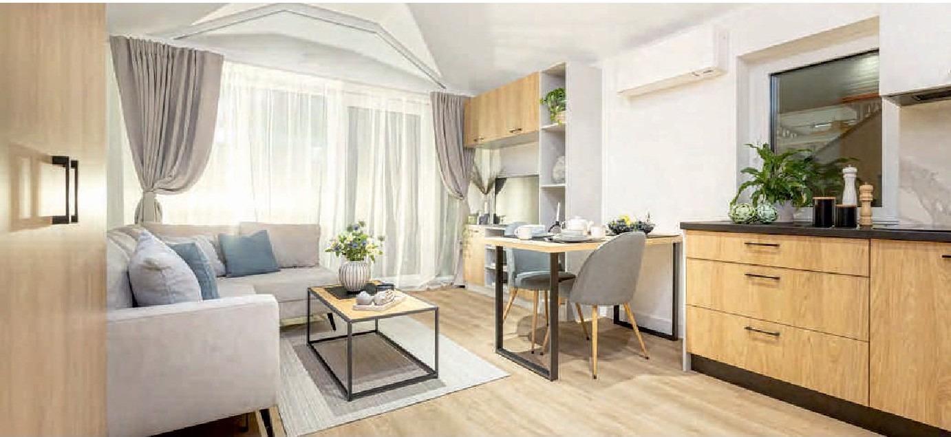 - Easy-care vinyl or laminate flooring in a choice of decor