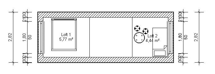 • Nutzfläche Schlafbereich (Loft über Wohnbereich): ca. 5,77 qm