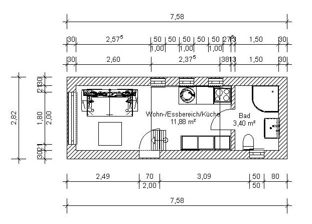 • Nutzfläche Wohn- und Küchenbereich: ca. 11,88 qm